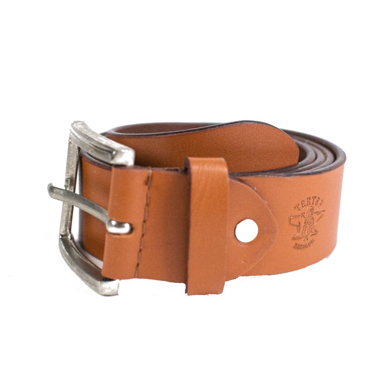 Мъжки колан от естествена кожа: Луксозен мъжки кожен колан от дебела телешка кожа с цвят Сахара и метална катарама подходящ за панталони и дънки.
